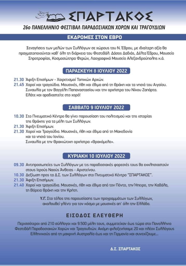 ΣΥΜΜΕΤΟΧΗ ΣΤΟ 26 ΦΕΣΤΙΒΑΛ ΠΑΡΑΔΟΣΙΑΚΩΝ ΧΟΡΩΝ ΣΤΑ ΑΝΘΕΙΑ ΕΒΡΟΥ