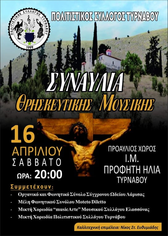 Συναυλία Θρησκευτικής Μουσικής στον προάυλιο χώρο της Ι.Μ. Προφήτη Ηλία Τυρνάβου