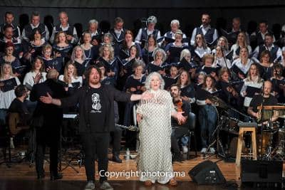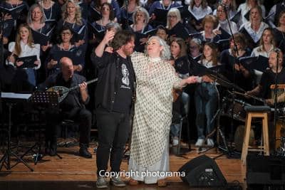 Μια υπέροχη συνεργασία, κάτι που φάνηκε και στο θερμό χειροκρότημα του κόσμου που συμμετείχε και αυτός τραγουδώντας ενθουσιασμένος όλα τα τραγούδια!!! Και όπως είπε και η Μελίνα : “Χαρά και τιμή μου που απόψε τραγουδάω με ΔΥΟ χορωδίες”!!!