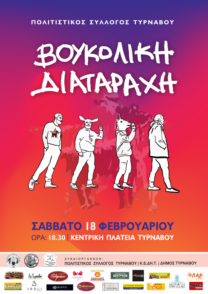 Η έναρξη θα γίνει το Σάββατο, 18/2 στις 18:00 στην Κεντρική Πλατεία με την εμφάνιση του τμήματος Κρητικών Χορών του Πολιτιστικού Συλλόγου ενώ θα ακολουθήσει συναυλία/γλέντι με το γνωστό συγκρότημα «Βουκολική Διαταραχή».