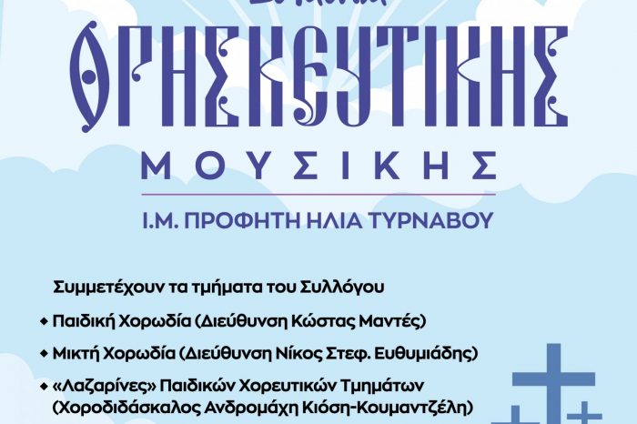 Απρ252024 Συναυλία Θρησκευτικής Μουσικής στην Ι.Μ. Προφήτη Ηλία Τυρνάβου Εκδηλώσεις, Παιδική Χορωδία, Χορωδία, Χορωδιακά Τμήματα25/04/2024